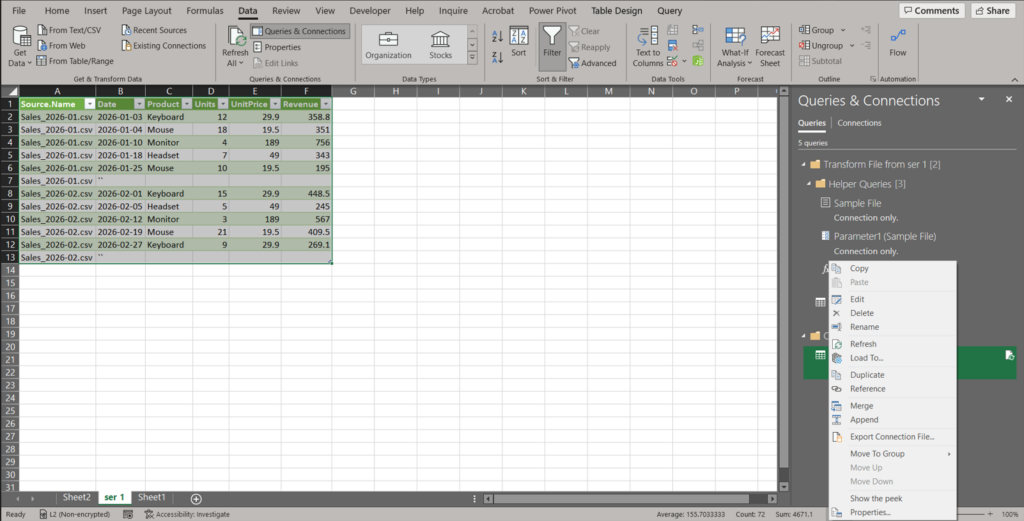 If you receive the same report every period (e.g., monthly CSVs), you can point Power Query at a folder, combine all files, and auto‑refresh next time you drop a new CSV into that folder—no manual copy‑paste ever again.
